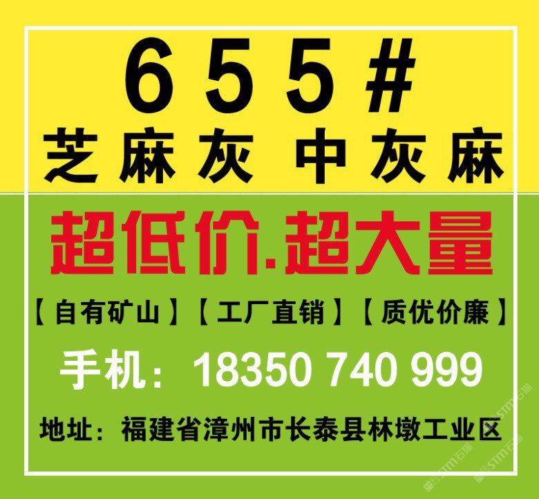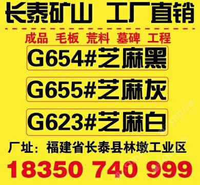 長泰礦山.工廠直銷 主營:G654芝麻黑、G655芝麻灰、G623芝麻白,產(chǎn)品暢銷國內(nèi)外 承接大批量工程單;磨光板,火燒板,臺面板,工程板,環(huán)境石,地鋪石,路沿石,小方石及各種建筑工程配套用石;墓碑石等各種異形石材制品。 本著“求新求精、合理利潤、共享成果”的經(jīng)營理念和“顧客至上,以質(zhì)為重”的服務(wù)宗旨,是G654芝麻黑及其它石制品的可靠供應(yīng)商。 合作電話:18350740999