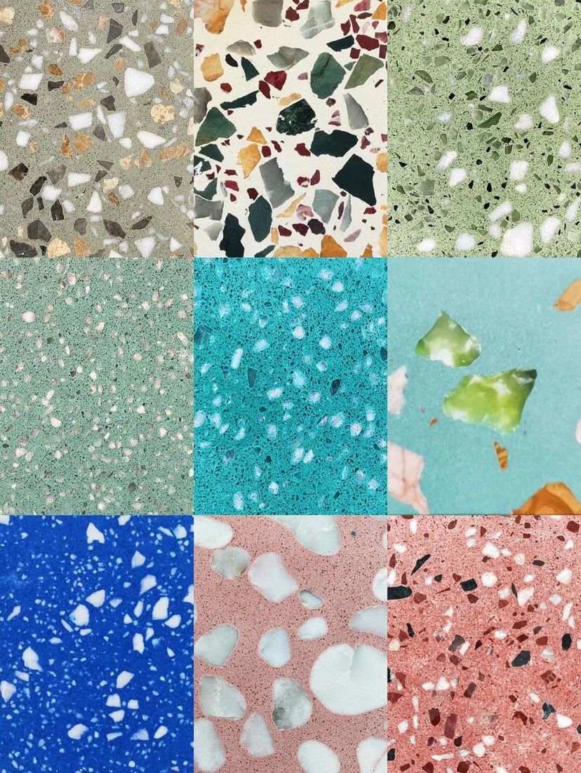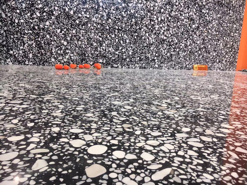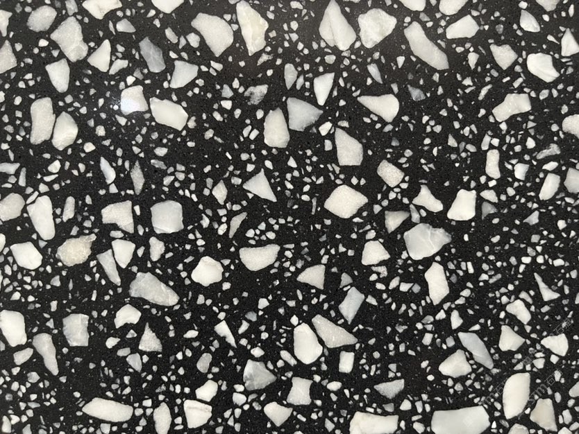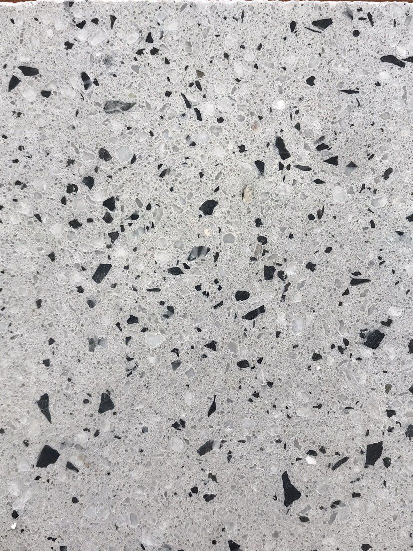 人造無機水磨石,生產(chǎn)主要原材料,天然礦石沙,高標號白水泥和水,經(jīng)過先進制作工藝流程壓制成型荒料,再根據(jù)工程設(shè)計厚薄規(guī)格切割成大板。