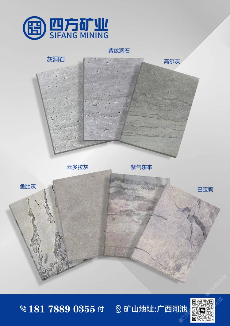 河池市四方礦業(yè)有限公司總部位于廣西壯族自治區(qū)河池市,成立于2012年,注冊資金800萬元。公司堅(jiān)持“以人為本,質(zhì)量為先,精益求精”的發(fā)展理念,依托技術(shù)創(chuàng)新與科學(xué)管理,深度挖掘大理石天然之美。公司擁有礦山采取自主開采,專注從事大理石開采、加工、深加工于一體。公司有專業(yè)熟練的行業(yè)技術(shù)員工,擁有過硬的各種開采生產(chǎn)設(shè)備,全年可開采荒料50000m3,礦石約150000噸,年產(chǎn)板材可達(dá)250000m2,公司已通過國家質(zhì)量管理體系和環(huán)境管理體系認(rèn)證,并建立有完善的質(zhì)量管理體系和科技創(chuàng)新機(jī)構(gòu)。 公司產(chǎn)品:紫紋洞石、灰洞石、高爾灰、魚肚灰、巴寶莉、云多拉灰、奧斯特灰、卡斯特灰等多種天然大理石產(chǎn)品。 大理石背景墻,大理石工藝品,天然大理石荒料,天然大理石厚板,天然大理石薄板,大理石雕刻,大理石線條,大理石桌面板,大理石臺面板,大理石窗臺板、成品板、大理石藝術(shù)品。 公司銷售:和碧桂園、萬科、萬達(dá)等多家知名房地產(chǎn)開發(fā)商建立戰(zhàn)略性合作協(xié)議,為其提供優(yōu)質(zhì)的天然大理石。公司采用自主開采礦山銷售的經(jīng)營模式,旨在讓客戶感受高性價比的天然大理石。