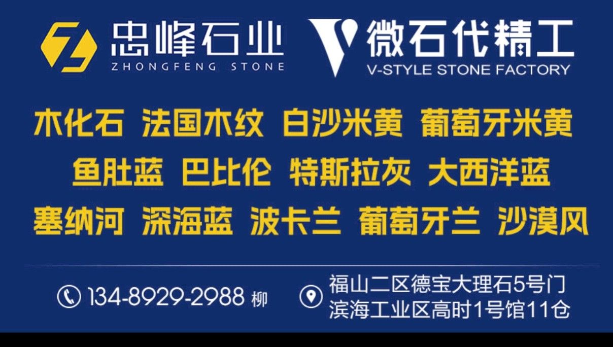 地址: 中國福建南安水頭鎮(zhèn)福山工業(yè)區(qū)二期德寶大理石廠5號門忠峰精品館