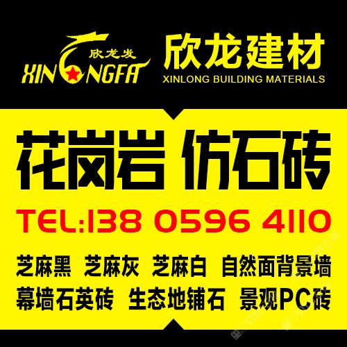 南安市欣龍建材發(fā)展有限公司,位于建材之鄉(xiāng)—福建省南安市石井鎮(zhèn),公司旗下?lián)碛袃纱笾髁Ξa(chǎn)品:花崗巖?仿石磚。(一)花崗巖:廠礦一體,荒料?大板?成品精加工,一站式供應(yīng)。擁有芝麻黑、芝麻灰、芝麻白、銹石、蝦紅、小藍(lán)寶、藍(lán)寶石、泉州紅、永定紅、福壽紅、福建青、鐘山青、喬治亞灰、G606、G617等品種,承接幕墻干掛、園林景觀、市政廣場、機(jī)場高鐵、別墅豪裝、酒店精裝、異形雕刻、自然面背景墻等工程。為石而生,匯聚石尚生活! (二)仿石磚:戶外陶瓷厚磚,接受客戶需求定制。不是石材,更勝石材!抗壓強(qiáng)度高、抗凍性能好、防滑耐磨、綠色環(huán)保。擁有幕墻石英磚、生態(tài)地鋪石、景觀PC磚、環(huán)保熔巖板、陶瓷透水磚、水泥PC磚等系列產(chǎn)品。采用先進(jìn)的技術(shù)與工藝,融匯東西方精粹,不斷創(chuàng)新,將不同文化風(fēng)尚及搭配方式重新組合設(shè)計(jì),開發(fā)現(xiàn)代新穎的產(chǎn)品,造就逼真無瑕的自然外觀質(zhì)感,滿足全球客戶不斷發(fā)展的個(gè)性化需求。產(chǎn)品廣泛應(yīng)用于園林小區(qū)、商業(yè)地產(chǎn)、公園廣場、市政道路、高鐵地鐵、酒店賓館、居家庭院、步行街、寫字樓、度假村、機(jī)場、學(xué)校、醫(yī)院、綠道等干掛鋪裝場所。因?yàn)閷W?,所以專業(yè)!