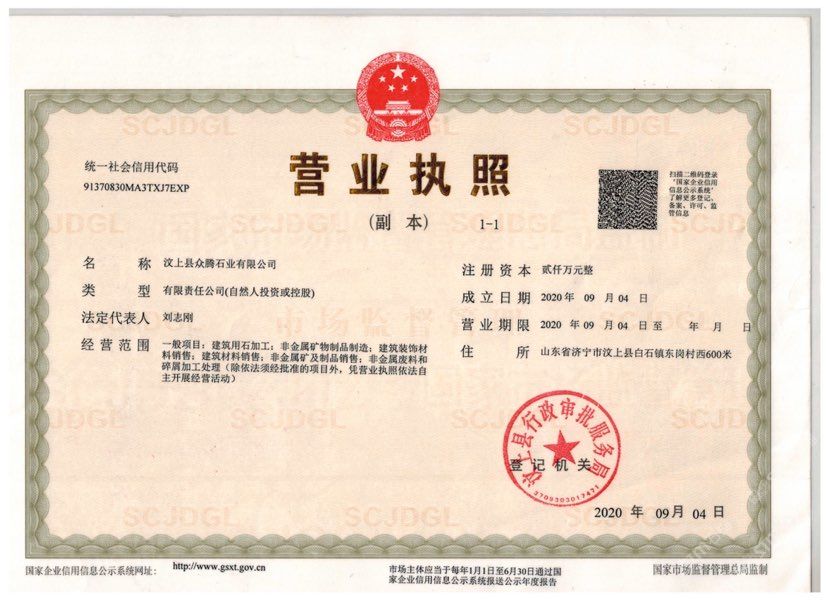 汶上縣眾騰石業(yè)有限公司,為減壓整合后的石材加工廠,有足夠得實(shí)力,以的質(zhì)量快的速度實(shí)惠的價格來滿足客戶需求聯(lián)系電話18264799333同微信