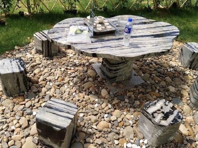 九龍壁石桌板凳-雕刻工藝大桌