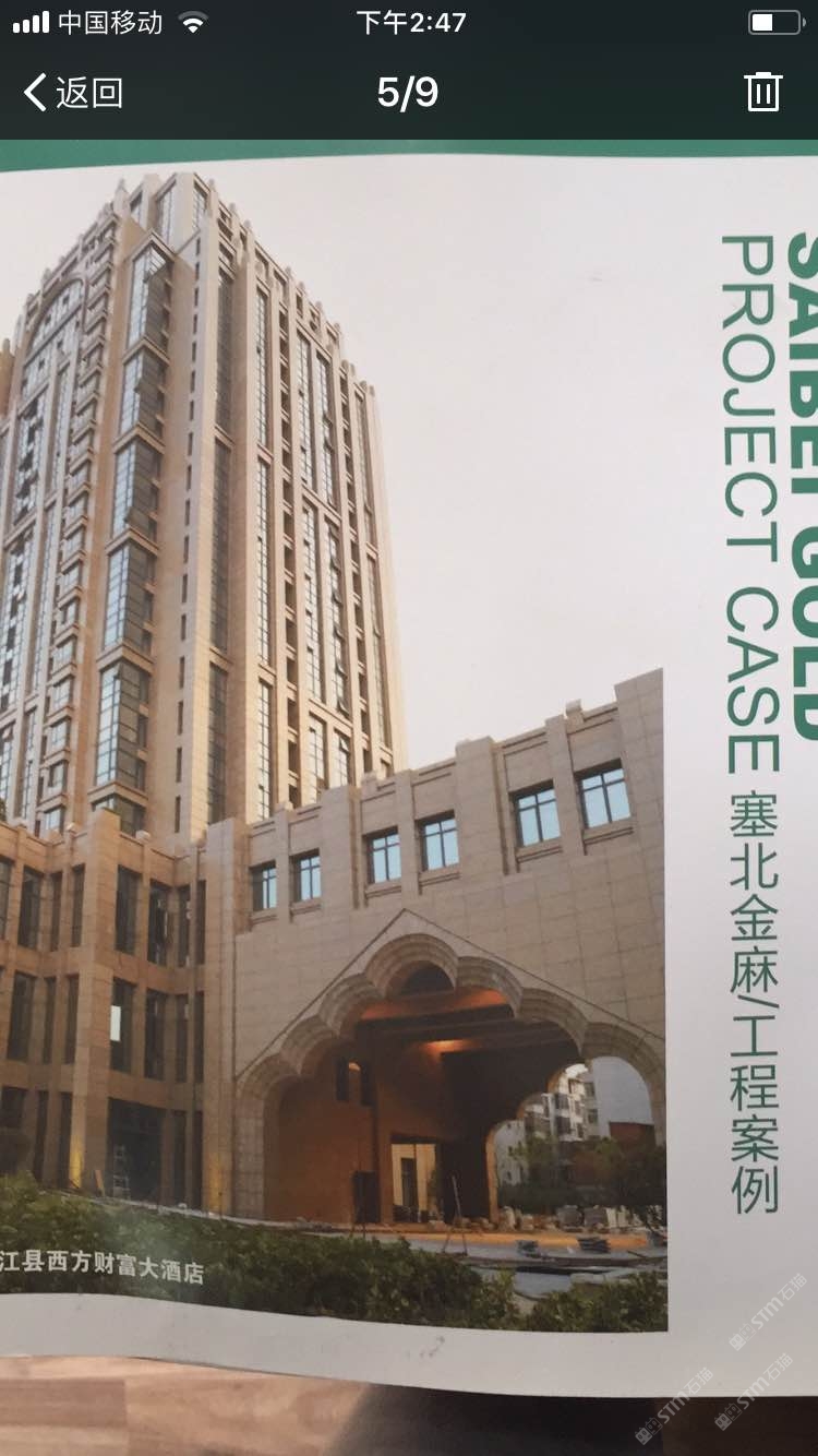 發(fā)布信息: 博磊公司主營:塞北金麻(自有礦區(qū),水頭有大量工程板,荒料)金鉆麻(自有礦區(qū)、水頭有大量工程板,荒料)664(水頭專門一個工廠生產(chǎn)羅源664,可以訂切任意規(guī)格)電話/微信:13950141091(黃)以上三個品種都可以定切任何尺寸