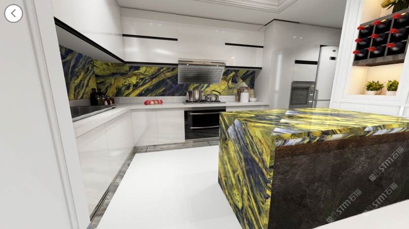 新景泰藍透光板廚房案例/半寶石/奢石/藍紋石透光板