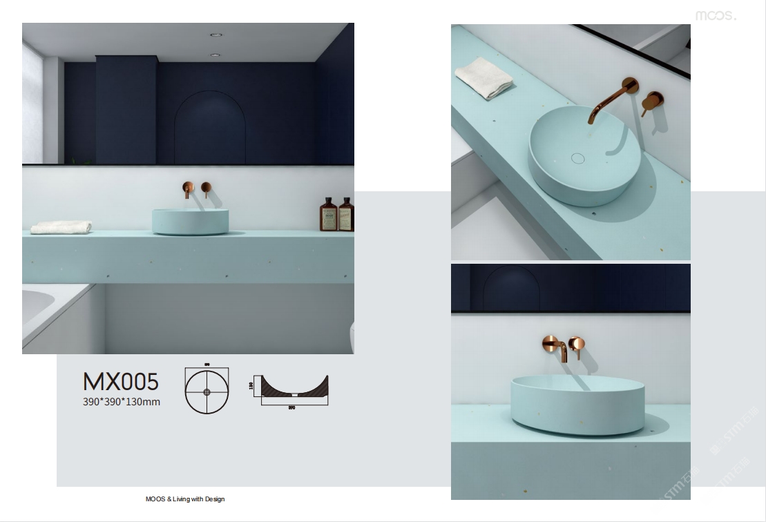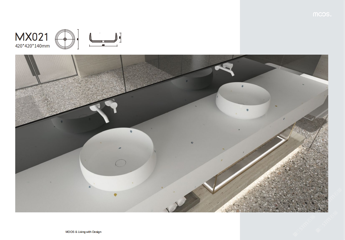 「MOOS魔石衛(wèi)浴」無機(jī)水磨石一體化臺盆設(shè)計