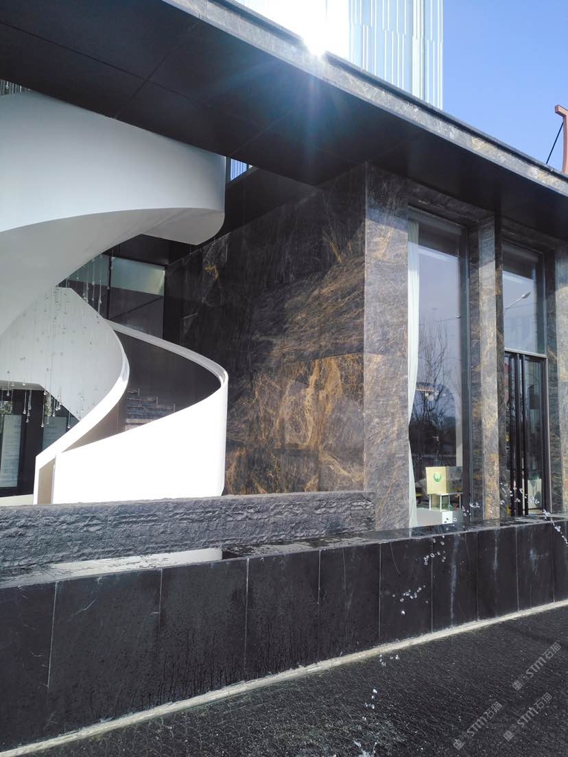 發(fā)布信息: 此項目位于西安新區(qū),設計師很有創(chuàng)意的使用寶格麗金這個產品用作外墻材料。整體風格簡約而不簡單,天然石材的深色帶藍和金線突顯售樓部的高檔與厚重。