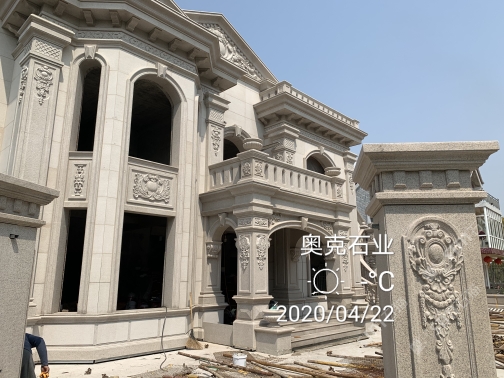 別墅外墻干掛石材、浮雕雕刻、異形線條雕刻加工、門窗