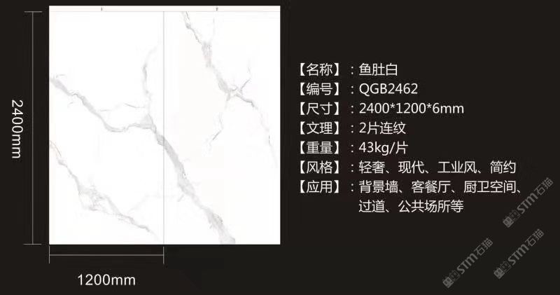 規(guī)格: 2400*1200*6mm/12mm 3200*1600*6mm/12mm 2600*800*15mm 花紋: 魚肚白/雪花白/爵士白/水泥灰/勞倫黑金