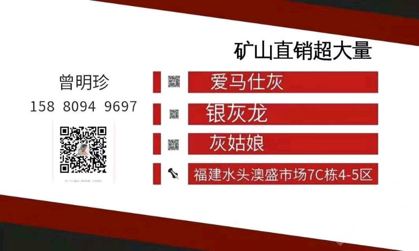 盛之和石業(yè) 聯(lián)系人:曾女士    158****9697 查看 手機(jī)號碼:無 主營范圍: 大板批發(fā)、荒料、礦山、大理石加工、石材外貿(mào)、 企業(yè)地址:福建泉州南安市水頭鎮(zhèn)東升石材超市3號通道c13