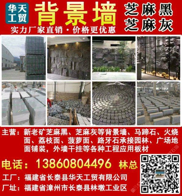 發(fā)布信息: 芝麻黑芝麻灰石材-和福石業(yè)林經(jīng)理13860804496自有大型加工廠,位于長泰縣林墩后爐工業(yè)區(qū);主營:老礦芝麻黑、新礦芝麻黑、副礦芝麻黑、老礦654、新礦654、芝麻黑G654、老礦芝麻黑G654、芝麻灰G655石材、芝麻白G623花崗巖、G688深灰麻、G641喬治亞灰、新礦喬治亞灰、黑色麻石、灰色麻石、白色麻石、黃麻石等,以墓碑石材加工為主,墓碑套墓、墓碑主碑、墓碑石大頭、墓碑石斜蓋板、光面墓碑石厚板等碑石加工,承接路沿石、地鋪石、馬蹄石、對剖石、亂拼石、冰裂紋、小方塊、蘑菇石、自然面背景墻、樹圍花圍、游泳池蓋板、盲道石、廣場石等市政園林景觀工程,歡迎你來電溝通洽談業(yè)務!
