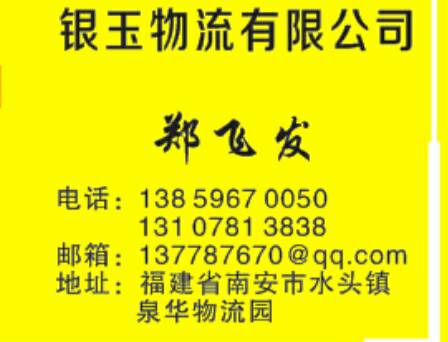 發(fā)布信息: 福建水頭康利物流承接,福建---全國各地(整車 零擔(dān))和大件貨物運輸。本公司自有車隊,價格合理,隨叫隨到,天天發(fā)車,歡迎來電咨詢!