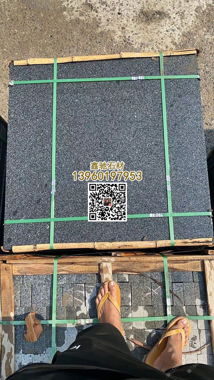 新654芝麻黑石材荔枝面地鋪石厚板鐘山青石材火燒板
