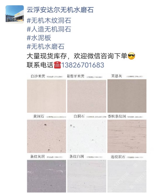 發(fā)布信息: #無機木紋洞石 #人造無機洞石 #水泥板 #無機水磨石 大量現(xiàn)貨庫存,歡迎微信咨詢下單[得意] 聯(lián)系電話??13826701683