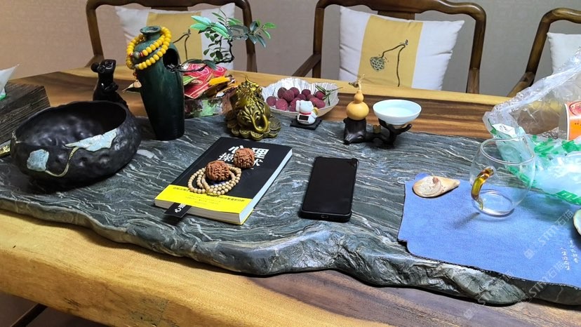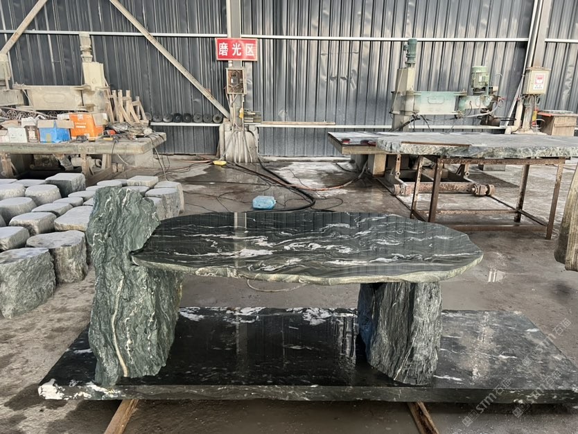 九龍玉石桌椅,地鋪碎拼,茶臺(tái)