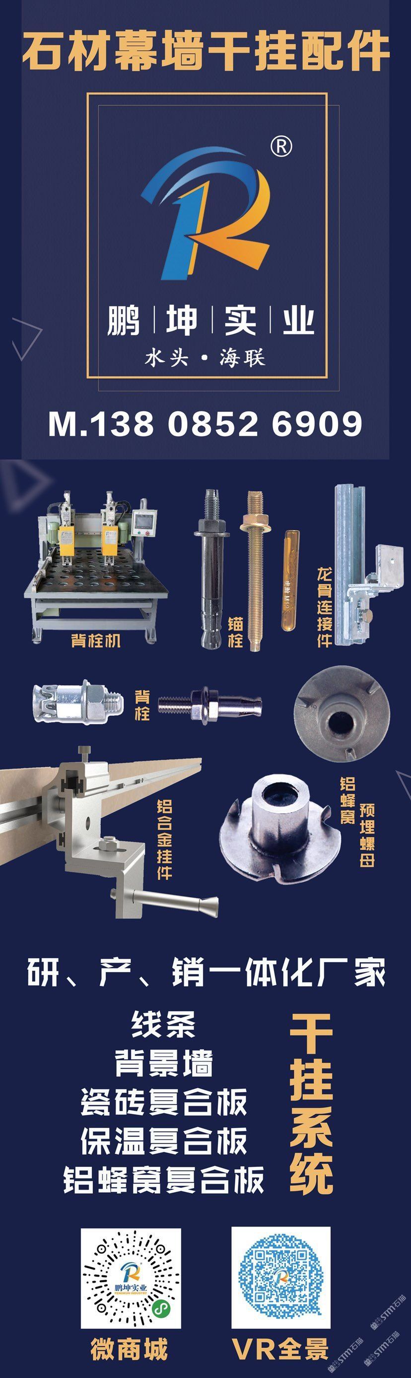 石材干掛件系統(tǒng)、鋁蜂窩預(yù)埋、背栓、背栓機、鋁合金等