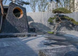 黑山石造景庭院假山流水效果