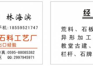 新華益石業(yè)主營(yíng)產(chǎn)品:七彩珍珠(雨花石),七彩石,桃花紅(老礦),桃花紅G687(火燒面),桃花紅G687(荔枝面),麻城G603(荔枝面),G603,麻城G603,七彩石2,七彩石1,G664,G617,G635安溪紅,羅源紅G664,皇室香檳(新礦),皇室香檳(老礦),皇室香檳2,安溪紅G3535(火燒板),G664(火燒面),G664(荔枝面),石線(大理石線條),文化石(流水石/流水墻),石線(花崗巖線條),水刀拼花(大理石),景觀石(泰山石),馬賽克(大理石),文化石(蘑菇石),奢石家居(奢石餐桌)企業(yè)地址:福建泉州福建省南安市石井鎮(zhèn)下房虎井村57號(hào)偉玲二廠鑫華磊石業(yè)13400889079王征